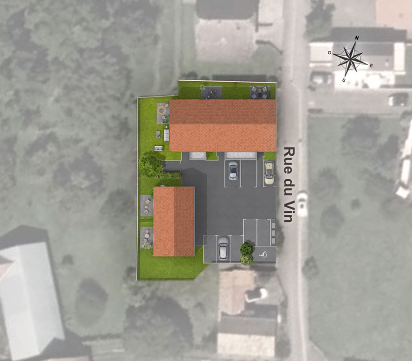 Afin de s’intégrer harmonieusement dans son environnement les 5 maisons ont été conçues pour rappeler les corps de ferme typiquement alsaciens.