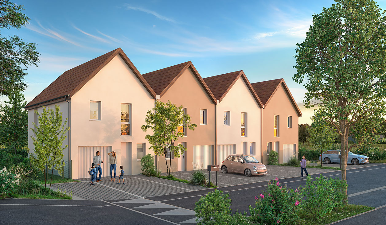 Nos maisons prennent place dans un quartier résidentiel proche de tout : école, commerces et activités sont à quelques minutes à pied.