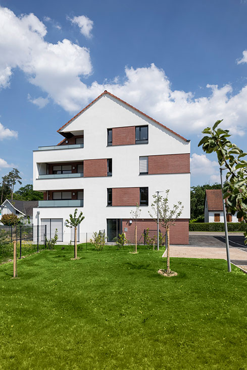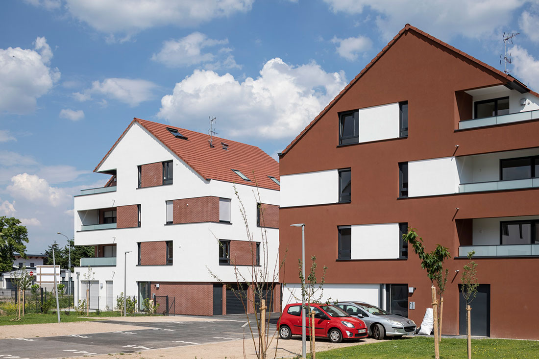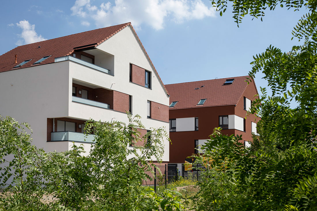 Bordés par des allées et des espaces végétalisés, ces bâtiments bas composent un site résidentiel, aux airs de petit village. Ils font également la part belle aux larges ouvertures et aux espaces extérieurs : chaque logement bénéficiant d’un balcon sans vis-à-vis ou d’une terrasse avec jardin privatif en rez-de-chaussée.