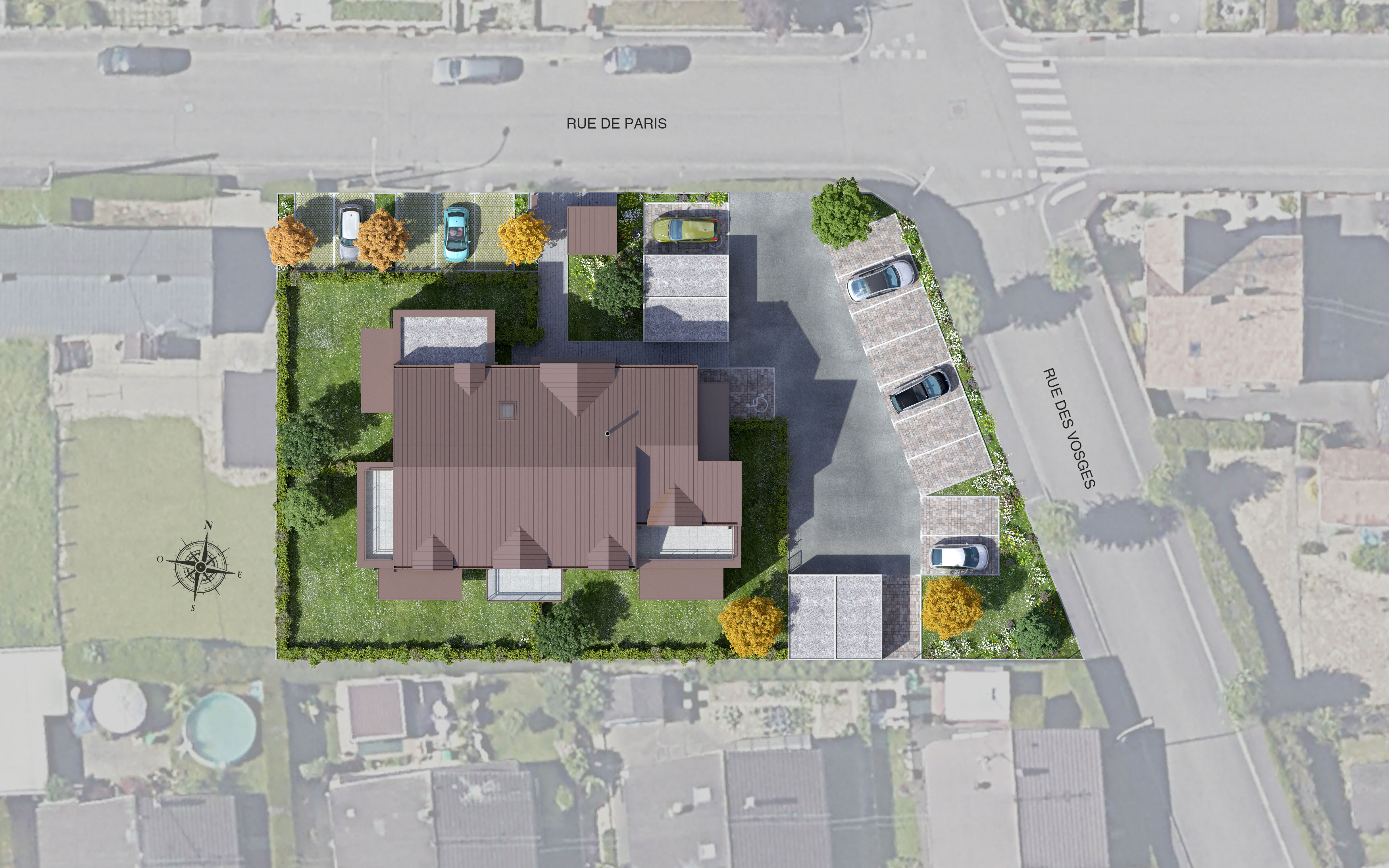 A Village-Neuf, une petite ville au cœur d’un environnement dynamique et attractif, Harmonia est idéalement située entre quartier résidentiel et espaces nature, à l’angle de la rue de Paris et de la rue des Vosges. Proche du canal de Huningue et des bords du Rhin, elle est également à proximité du centre-ville, des services, des écoles, des commerçants et des transports en commun, et même à moins de dix minutes en voiture de Saint-Louis et de ses commerces.