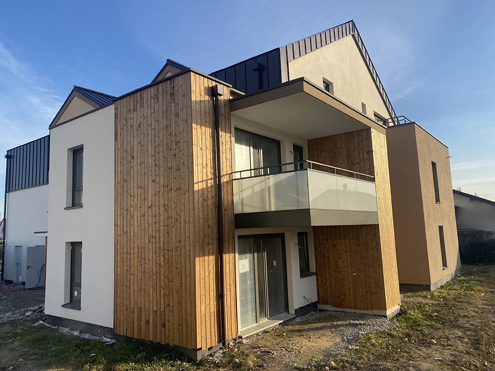Harmonia est un bâtiment à l’inspiration traditionnelle. À l’extérieur, ses larges mansardes, ses couleurs sobres et son bardage métallique à effet bois et ses garde-corps en verre opalescent, lui confèrent une belle note élégante et contemporaine.